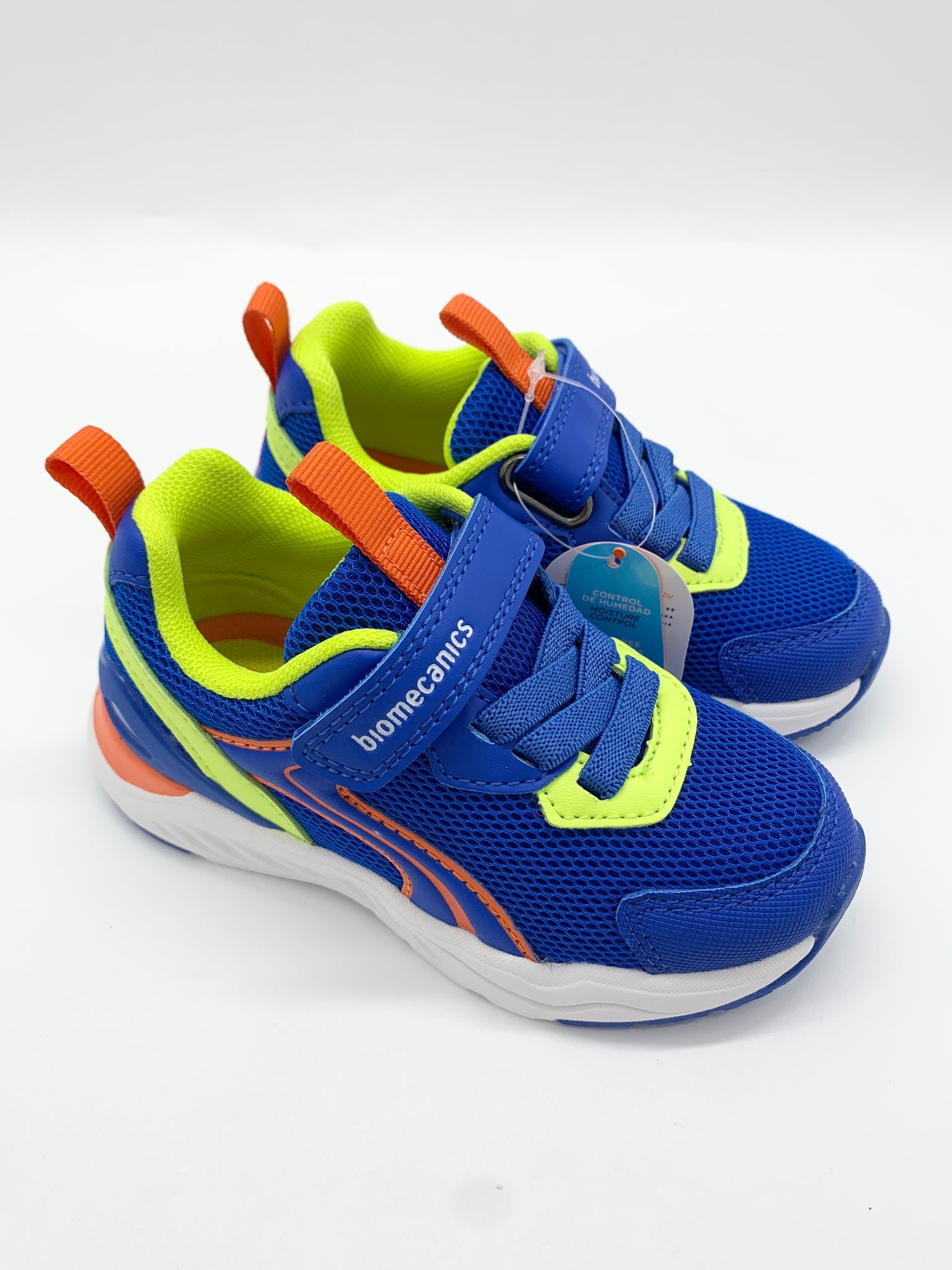 Biomecanics Trainer Blue/Azul Electrico 262273-B090-  Excellent heel support. Single velcro fastening and elasticated lace. Breathable upper. Toe bumper to prevent scuffing. Non slip sole. Removable insoles.
